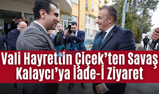 Kısa bir süre önce Karaman Valisi olarak göreve atanan Hayrettin Çiçek, Karaman Belediye Başkanı Savaş Kalaycı’ya iade-i ziyarette bulundu.Belediye binası önünde Vali Hayrettin Çiçek'i karşılayan Belediye Başkanı Savaş Kalaycı, Vali Çiçek'i makamında ağırlayarak bir süre sohbet etti. Ziyaretten duyduğu memnuniyeti dile getiren Belediye Başkanı Savaş Kalaycı, Vali Hayrettin Çiçek’e yeni görevinde başarılar dilerken, Vali Çiçek de misafirperverliğinden dolayı Başkan Kalaycı’ya teşekkür etti.