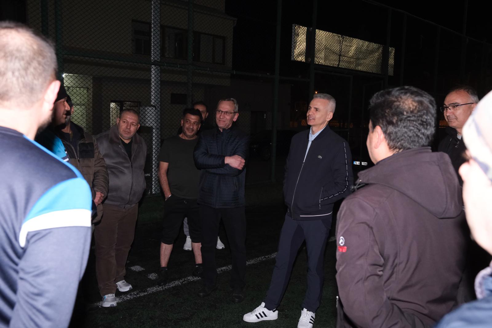 Sosyal medyada bir vatandaşımızın Yunuskent Futbol Sahası’nın ışıklandırma sorununun çözülmesine yönelik talebi üzerine Vali Mehmet Fatih Çiçekli, sahada incelemelerde bulundu.Gençlik ve Spor İl Müdürü Mustafa Karadeniz’in de eşlik ettiği ziyarette Vali, ışıklandırma probleminin giderilmesi için yetkililere gerekli talimatları verdi.İncelemeler sırasında sahada antrenman yapan veteran futbolcularla da bir araya gelen Vali, futbolcularla bir süre sohbet etti.