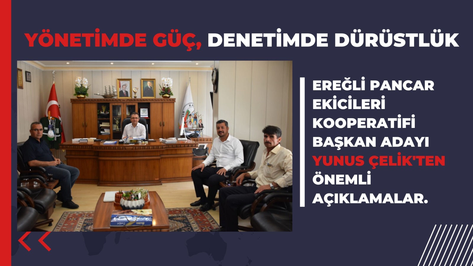 Ereğli Pancar Ekicileri Kooperatifi Başkan Adayı Yunus Çelik, güçlü bir yönetim ve şeffaf bir denetim anlayışıyla üreticinin hakkını koruyacaklarını söyledi.