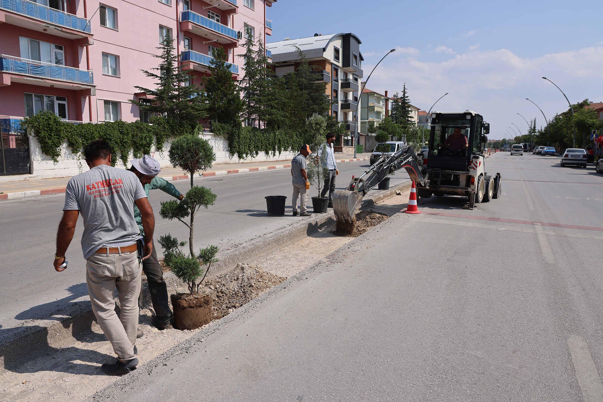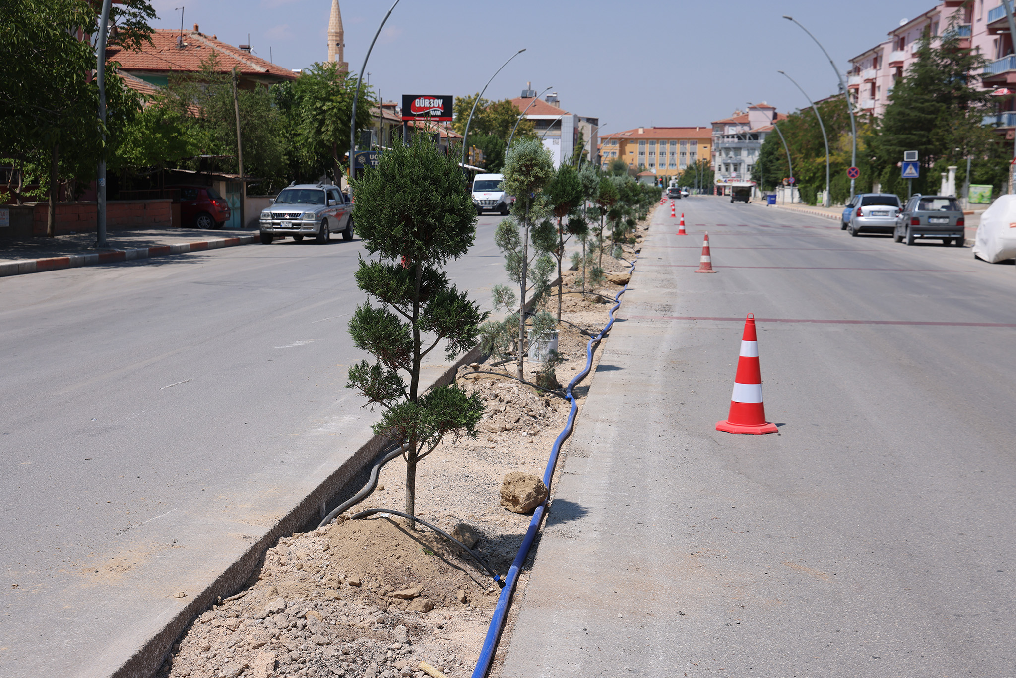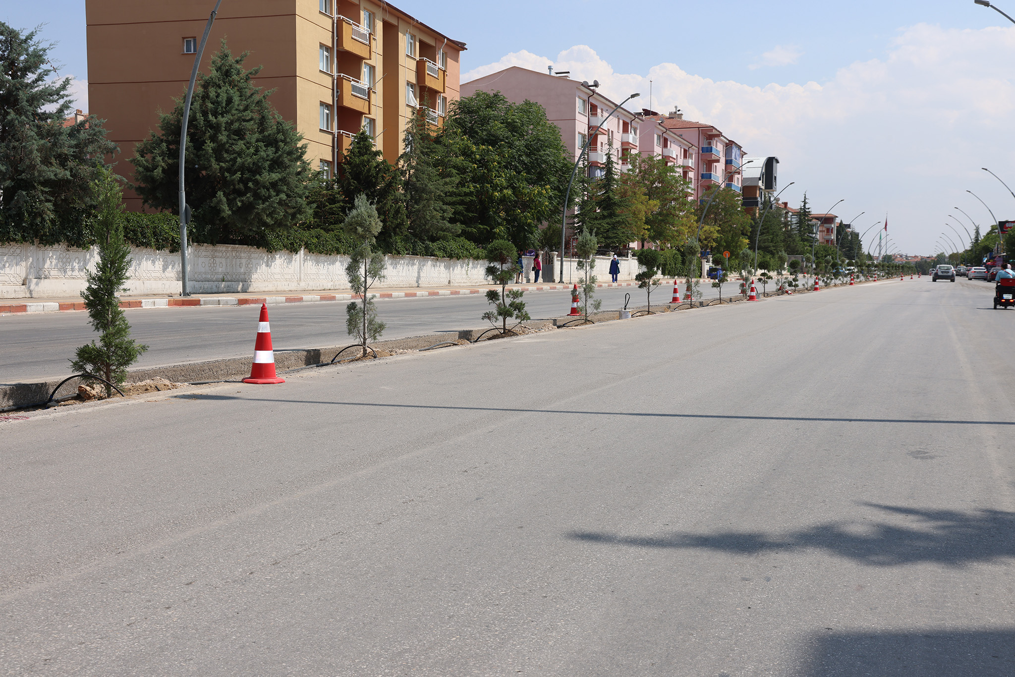 Karaman'da şehir içi ulaşımın önemli güzergâhlarından biri olan Zeytin Dalı Bulvarı'nda, trafik akışını daha konforlu ve güvenli hale getirmek için başlatılan orta refüj çalışması tüm hızıyla devam ederken bir taraftan da bitkilendirme çalışması yapılıyor. Kentin her köşesini birbirinden güzel mevsimlik çiçekler ve bitkilerle süslemeye devam eden belediye ekipleri, bu kez de Zeytin Dalı Bulvarı'nda orta refüj için kazılan alana mavi servi ve leylandi türü ağaçlar dikiyor. Orta refüjde peyzaj düzenlemesi tamamlandıktan sonra çeşitli renklerde güller de bulvarı süsleyecek.